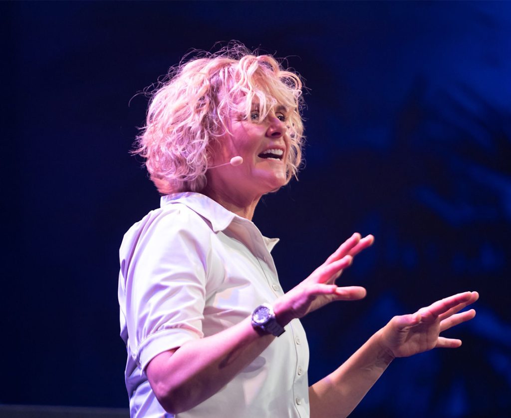 About dreams, choices, career, status and the biggest energy drain that exists: micromanagement. But also about courage, falling apart and getting back up. Jennifer shares her life, full disclosure. Served up in a whirlwind show with infectious choreography to the beats of the DJ on stage. Nobody — absolutely nobody — can stay in their seat. Every team benefits from laughing together. But you also take something away professionally. Like how to find and use your own compass again.